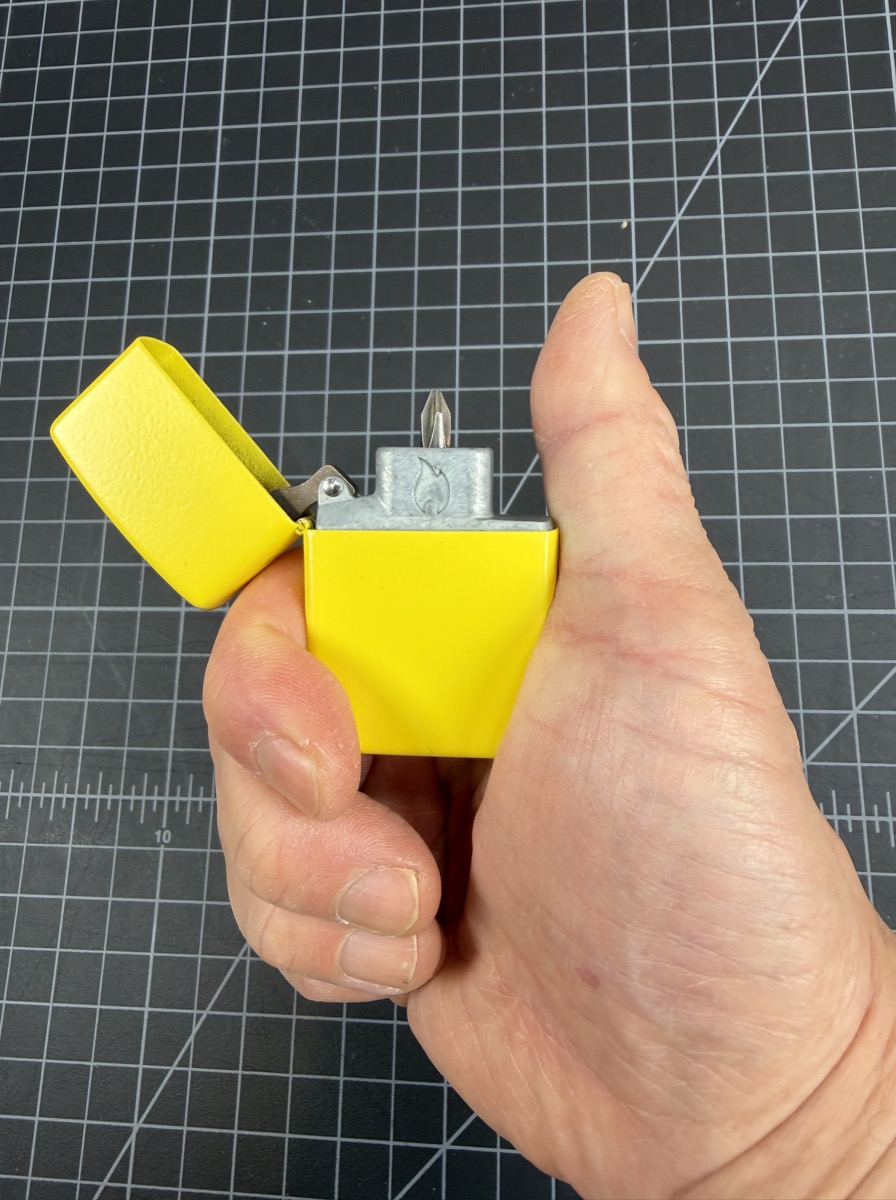 REVIEW – A folding knife is a common everyday carry item. Lighters aren’t unusual. But what if you need a screwdriver and you don’t have a multitool? Enter the Zippo Bit Safe lighter insert, a clever and compact way to unscrew your way out of a jam. ⬇︎ Jump to summary (pros/cons) Price: $19.95 (insert only) Where